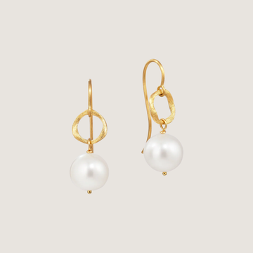 Vega Loop øreringene i 18k guld forener Dulongs børstede signaturoverflade med ferskvandsperlens klarhed.
